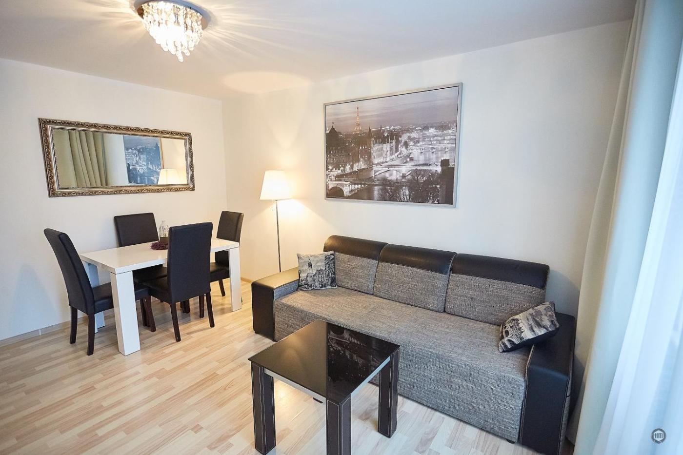 Apartament z 2 sypialniami. This apartment is comprised of a kitchen, a seating area, 2 separate bedrooms and 1 bathroom with a bath and a shower. In the well-equipped kitchen, guests will find a stovetop, a refrigerator, kitchenware and an oven. Featuring a balcony with city views, this apartment also offers a dining area and a flat-screen TV. The unit offers 3 beds. Apartament - 4 osobowy. Powierzchnia pokoju ok.: 40 mkw.